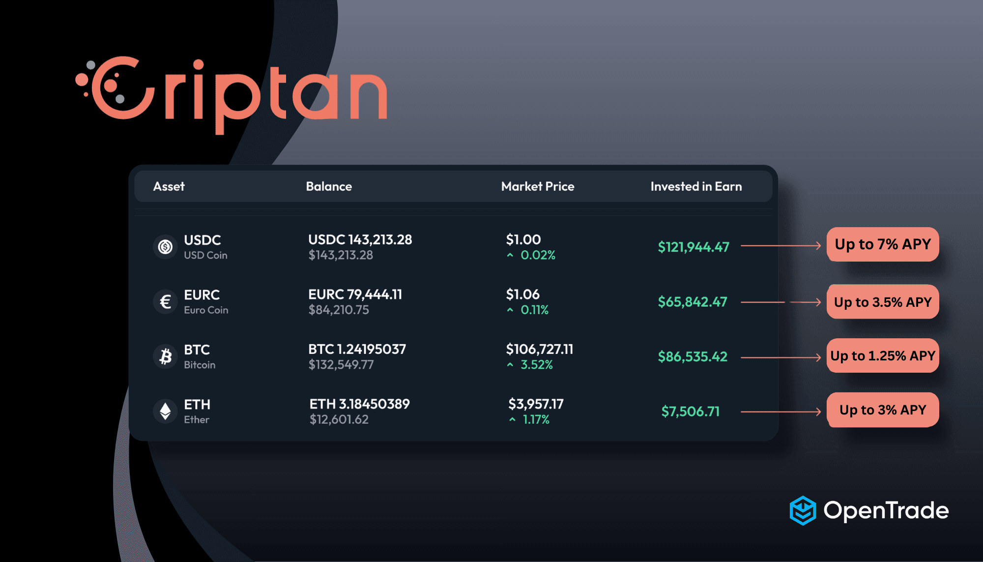 Through Littio's partnership with OpenTrade, Littio can directly invest USDC, and now EURC from their segregated, Littio-custodied wallet into yield-generating tokenized assets via OpenTrade. Clients can earn competitive money market returns on idle balances while enjoying the flexibility to move capital quickly and easily through Littio's app